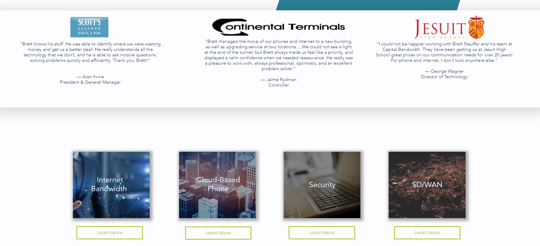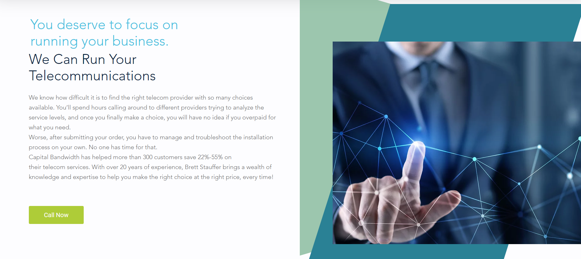 When potential customers go to Capital Bandwidth’s website now, they’re more likely to actually become customers. That’s because now, it’s clear to anyone who visits their website what Capital Bandwidth does and how they can help businesses accomplish their technology goals with their impeccable service. Capital Bandwidth was incredibly happy with the results and loved following our proven process and framework.