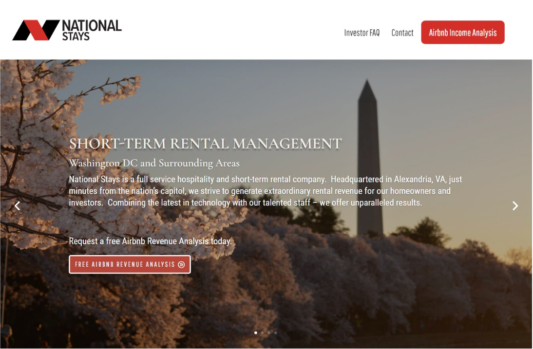 National Stays provides short-term-rental management for homeowners and investors in the City of Alexandria, Virginia. Most homeowners & real estate investors know they could make more money on platforms like Airbnb rather than renting to a long-term tenant, they just don’t want the hassle of housekeeping, guest communication, and marketing. National Stays does all of that and more for the owner or investor.