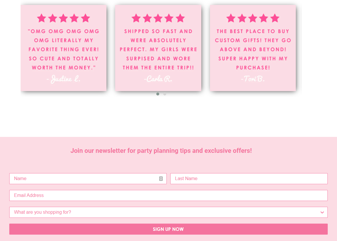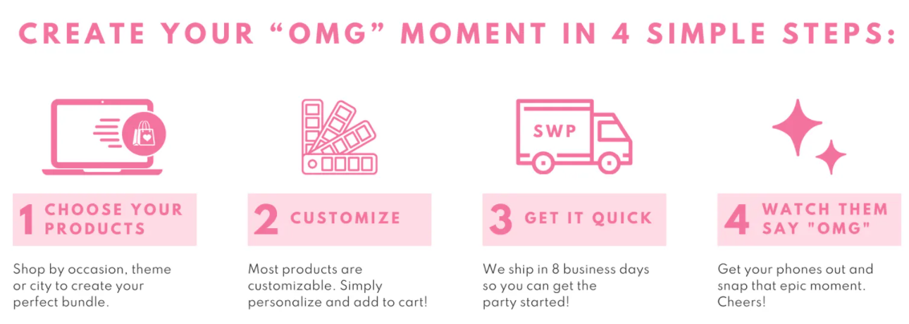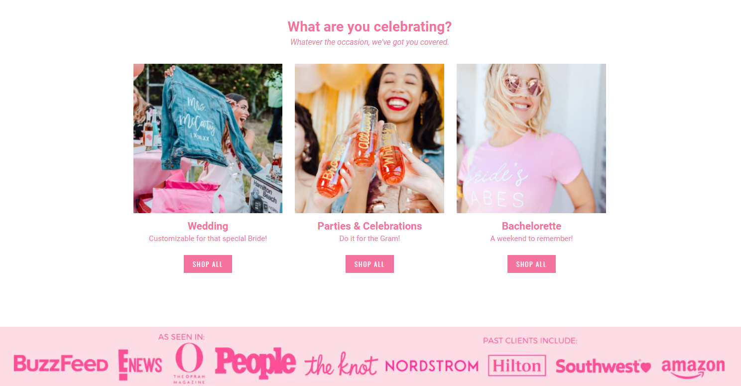 Sprinkled With Pink is an eCommerce business that sells products to help make parties anything but boring. The owner of the business started out on Etsy and when her business boomed to the #1 Etsy store, she knew it was time to update her Shopify site. However, before she started spending money on design and development, she needed to create a brand message that was clear and consistent. While she wasn’t familiar with the StoryBrand framework, when we explained it to her, she was incredibly excited to get started — and that excitement was well-founded. We took her through our customized brand identity process that includes the 7-part StoryBrand framework and developed her brand messaging in a clear, concise, and powerful way. Then, we went on to write her website homepage copy using that brand messaging to help her get more sales. Sprinkled With Pink’s products help make parties fun and exciting, so we knew her website had to reflect those feelings, too.
